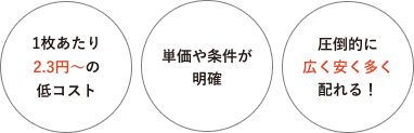 全国の主要都市をカバーする業界最大手アトだから実現できる超広域ポスティングを納得のコストで。新聞折込を凌駕する圧倒的なリーチ数とアトならではの高い配布品質が、集客を最大化します。