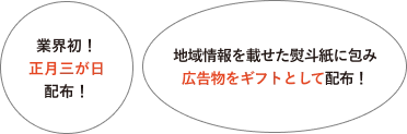 皆様のチラシにきれいな熨斗紙をつけてお届けしたい!という発想から生まれた@LETTER(アットレター)。この@LETTERを巻紙にして地域の情報と一緒にお届け。そして、ポスティング®の課題でもあった『正月三が日配布』を、リーディングカンパニー・アトが2025新年を皮切りに実現します。